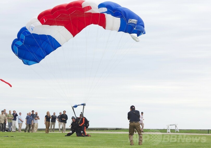 最近公の場に姿を見せるときはよく車椅子に座り、体力の衰えが目立っていたブッシュ氏だが、この日はマイクロブログのツイッター(Twitter)に「メーン(Maine)州は快晴。パラシュートジャンプにはうってつけの天気だ」と投稿。