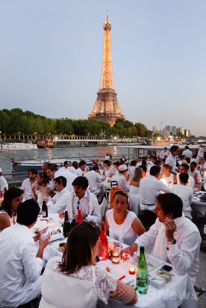 1万2000人が白服でディナー、仏パリで恒例イベント