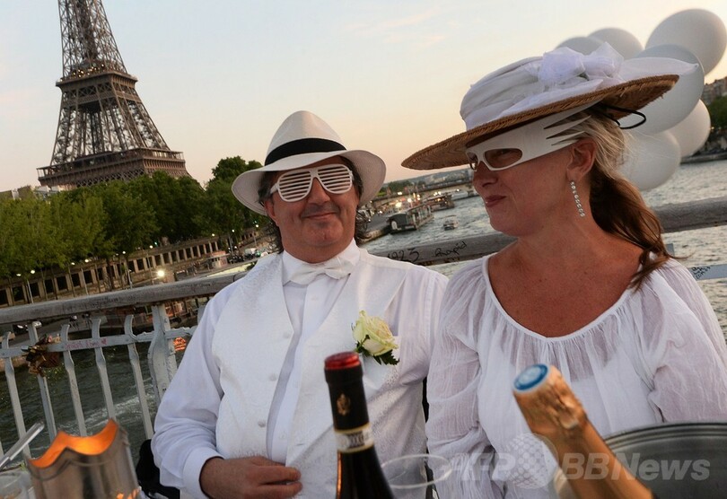 【6月13日 AFP】フランス・パリ(Paris)市内各地の橋の上で12日、インターネットなどでの呼び掛けに応え白い服に身を包んで集まった人々が一斉に夕食を楽しむイベント「ディネ・オン・ブロン(Diner en Blanc)」(白い宴)が開催された。
