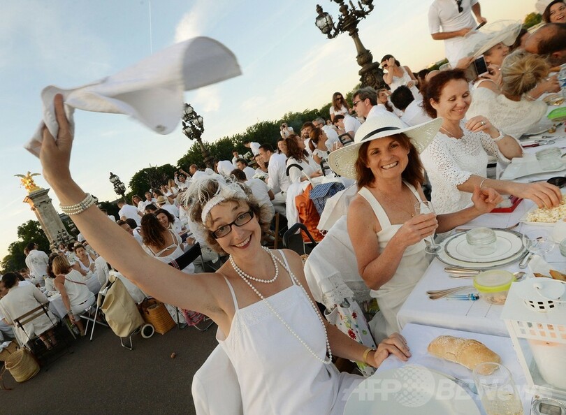 1万2000人が白服でディナー、仏パリで恒例イベント