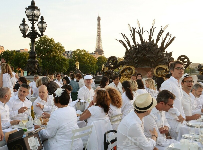 1万2000人が白服でディナー、仏パリで恒例イベント