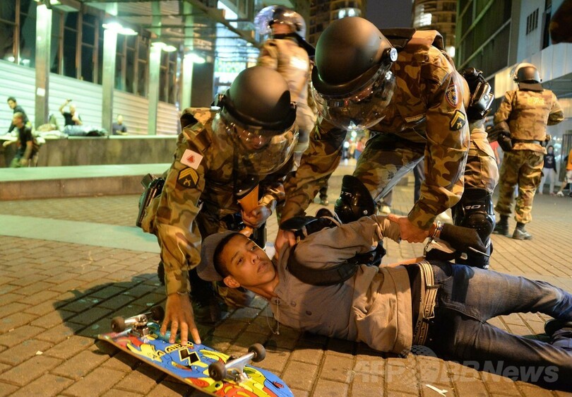 デモ隊と警官隊の衝突は、サンパウロ(Sao Paulo)でW杯開会式が行われている最中に始まり、開幕戦のブラジル対クロアチア戦のキックオフ後も続いた。