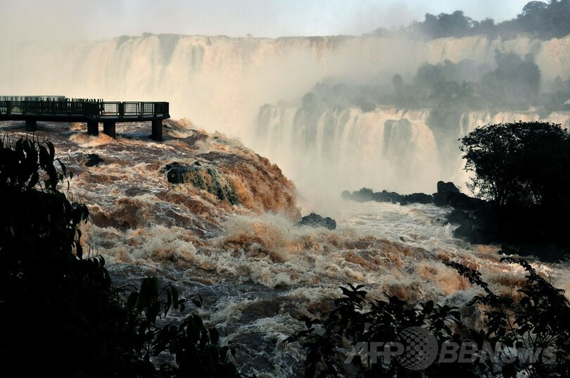 パラナ州電力公社(COPEL)によれば、9日時点でのイグアスの滝の流量は、通常の30倍を観測した。隣接するパラグアイでも洪水が発生し、地元当局によると首都アスンシオン(Asuncion)で約15万人が避難を余儀なくされているという。(c)AFP