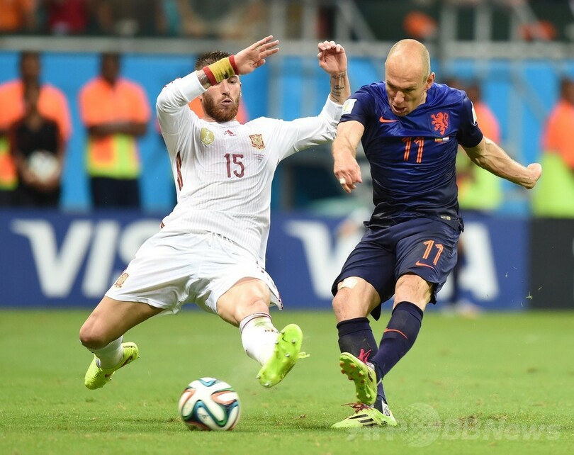 【6月14日 AFP】サッカーW杯ブラジル大会(2014 World Cup)は13日、サルバドール(Salvador)でグループBの試合が行われ、オランダが5-1で前回大会王者スペインに大勝した。