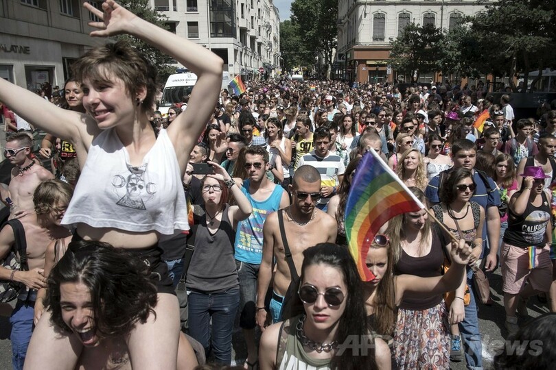 ニュース 社会 フランスで恒例のLGBTパレード開催 2014年6月15日 14:19 発信地:ナント/フランス [ ヨーロッパ フランス ] このニュースをシェア ‹ › ❮ 4/11 ❯ フランス東部リヨン(Lyon)で行われたLGBT(レズビアン、ゲイ、バイセクシュアル、トランスジェンダー)のパレードの参加者たち(2014年6月14日撮影)。(c)AFP/JEAN-PHILIPPE KSIAZEK 画像作成中 ! 【6月15日 AFP】フランス西部ナント(Nantes)と東部リヨン(Lyon)で14日、毎年恒例となったLGBT(レズビアン、ゲイ、バイセクシュアル、トランスジェンダー)の権利拡大を訴えるパレードが開催された。 リヨンでは約1万人が参加。「自分の身体を自由に扱う権利」を訴えた。一方、ナントではダンスミュージックが流れる中、LGBTの人たちやドラァグクイーン(女装パフォーマー)のほか、人権活動家らも街中を行進した。(c)AFP 社会 一覧へ> メディア・報道関係・法人の方向け 写真・動画 購入のお問合せ>