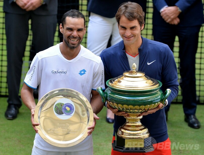 【6月16日 AFP】男子テニス、ゲリー・ウェバー・オープン(Gerry Weber Open 2014)は15日、シングルス決勝が行われ、大会第2シードのロジャー・フェデラー(Roger Federer、スイス)が7-6、7-6でコロンビアのアレハンドロ・ファリャ(Alejandro Falla)を退け、通算7度目の優勝を飾った。