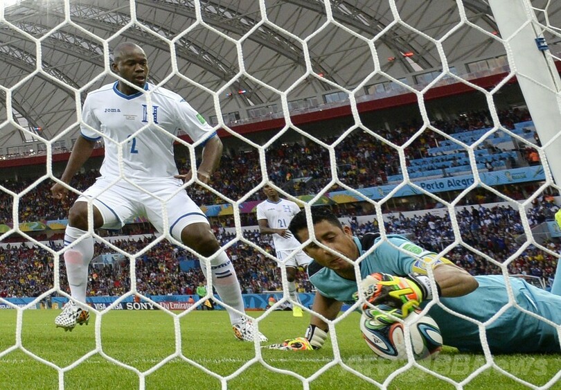 フランスのカリム・ベンゼマ(Karim Benzema)が放ったシュートはポストをたたいたが、跳ね返ったボールがホンジュラスのGKノエル・バジャダレス(Noel Valladares)に当たってゴール方向に転がった。