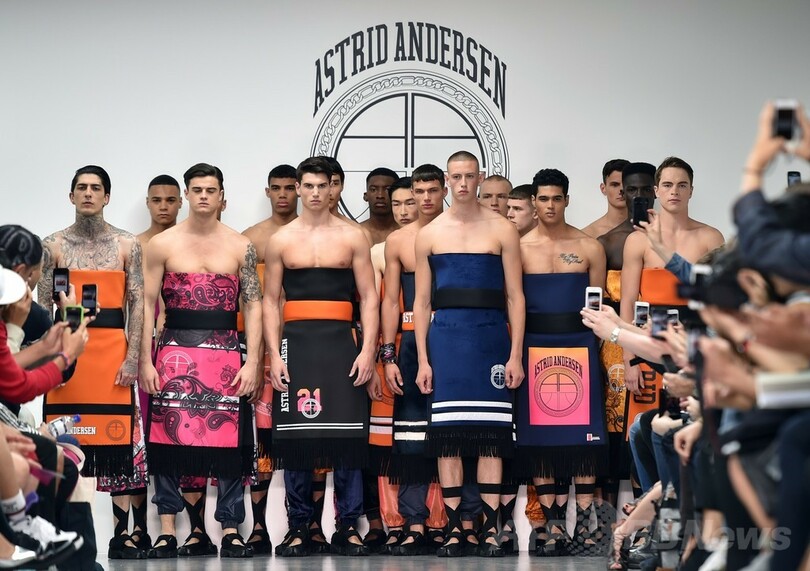 【6月16日 AFP】英ロンドン市内で15日から17日まで15年春夏ロンドン・メンズコレクションが開催されている。