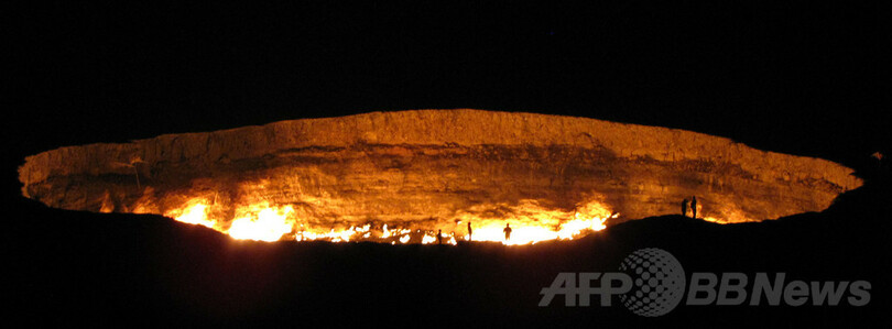 【6月23日 AFP】トルクメニスタンにあるカラクム(Karakum)砂漠の中央部には、天然ガスが延々と燃えさかる巨大なクレーターが存在する。