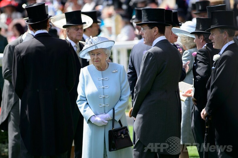 ロイヤルアスコットでは伝統が重んじられており、今日においても一部の観戦席では、女性はドレスに帽子、男性はえんび服とシルクハットの着用といったドレスコードが設けられている。また期間中は、四輪馬車でエリザベス女王(Queen Elizabeth II)が毎日観戦に訪れるのも名物の1つとなっている。(c)AFP