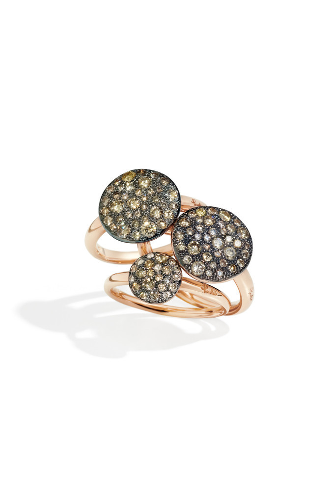 「サッビア」は砂漠の砂のやわらかな輝きから着想を得たジュエリーコレクション。波打つ形の不規則で独創的なパヴェセッティングが特徴的。プチバージョンはローズゴールドをベースにブラックダイヤモンド、ホワイトダイヤモンド、ブラウンダイヤモンドを組み合わせた全3種類で展開する。価格はそれぞれ14万1000円、20万8000円、15万6000円(すべて税抜)。(c)MODE PRESS