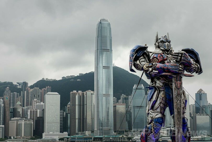 【6月20日 AFP】香港(Hong Kong)で19日、映画『トランスフォーマー/ロストエイジ(Transformers: Age of Extinction)』のワールドプレミアを記念して、高さ20フィート(約6.1メートル)のオプティマスプライム(Optimus Prime)のフィギュアが設置された。同映画の一部は香港で撮影されている。(c)AFP