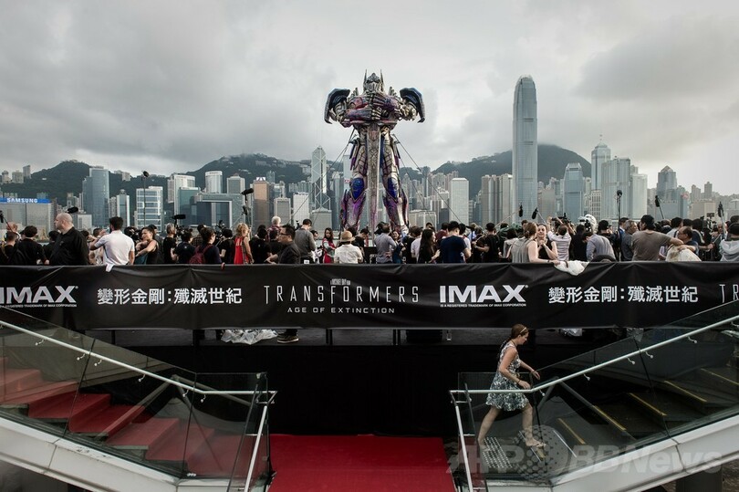【6月20日 AFP】香港(Hong Kong)で19日、映画『トランスフォーマー/ロストエイジ(Transformers: Age of Extinction)』のワールドプレミアを記念して、高さ20フィート(約6.1メートル)のオプティマスプライム(Optimus Prime)のフィギュアが設置された。同映画の一部は香港で撮影されている。(c)AFP
