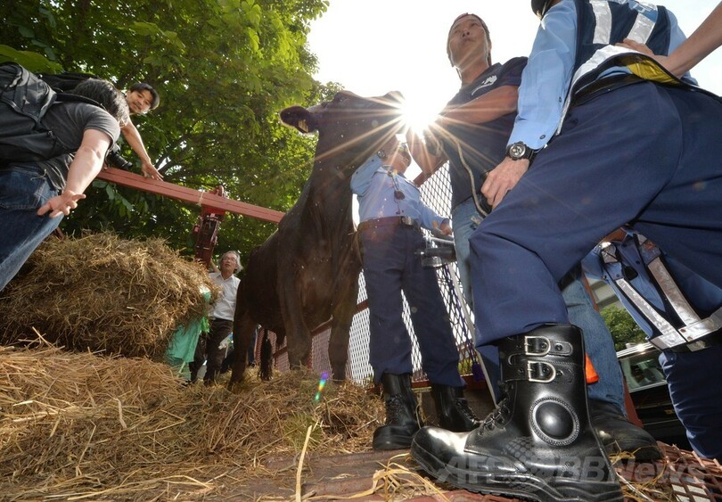 【6月20日 AFP】東日本大震災に伴う東京電力(TEPCO)の福島第1原子力発電所の事故で被ばくした牛の保護・支援を続けている非営利団体「希望の牧場・ふくしま」は20日、被ばくした牛1頭を連れて都内の農水省前を訪れ、原発周辺の牛たちの皮膚に白い斑点が生じている理由を調査するよう政府に要求した。(c)AFP