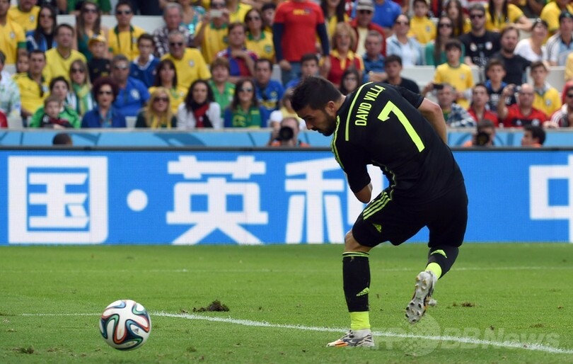 アトレティコ・マドリード(Atletico de Madrid)のスペイン1部リーグ優勝に貢献したビジャは、今大会終了後にオーストラリア・Aリーグのメルボルン・シティ(Melbourne City)で3か月間プレーし、米メジャーリーグサッカー(MLS)に2015年から新規参入するニューヨーク・シティFC(New York City FC、NYCFC)に加入することが決まっている。(c)AFP