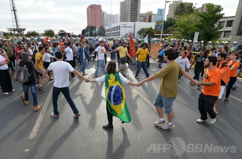 【6月24日 AFP】23日のサッカーW杯ブラジル大会(2014 World Cup)、ブラジル対カメルーンの試合中に、会場があるブラジリア(Brasilia)や同国最大の都市サンパウロ(Sao Paulo)で医療や教育への投資拡充を求めるデモが行われた。