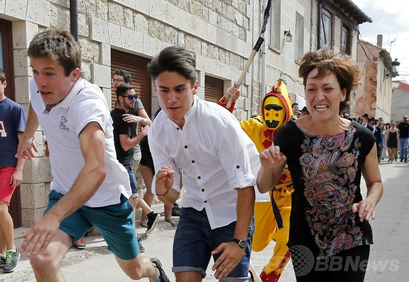 【6月25日 AFP】スペイン北部ブルゴス(Burgos)近郊の村、カストリージョ・デ・ムルシア(Castrillo de Murcia)で22日、カトリックの「聖体祭(Corpus Christi)」を祝う伝統行事「エル・コラチョ(El Colacho)」が行われた。路上に寝かせた赤ちゃんの上を悪魔に扮(ふん)した男たちが飛び越える毎年恒例のこの行事は、その起源を1620年にまでさかのぼる。(c)AFP