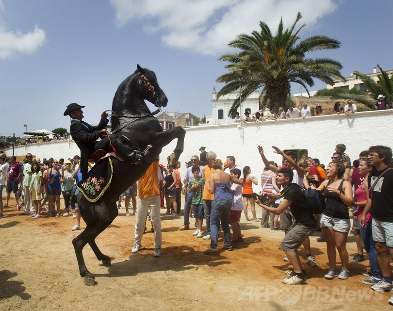 ニュース ライフ サン・フアン祭伝統の「馬祭り」、スペイン・メノルカ島 2014年6月25日 17:50 発信地:シウタデリャ/スペイン [ ヨーロッパ スペイン ] このニュースをシェア ‹ › ❮ 7/9 ❯ スペイン・バレアレス(Baleares)諸島メノルカ(Menorca)島シウタデリャ(Ciutadella)で行われた馬術競技を披露するサン・フアン(San Juan)祭伝統の馬祭り(2014年6月24日撮影)。(c)AFP/JAIME REINA 画像作成中 ! 【6月25日 AFP】キリスト教の聖人サン・フアン(San Juan、聖ヨハネ)の誕生日とされる24日、地中海に浮かぶスペイン・バレアレス(Baleares)諸島メノルカ(Menorca)島ではサン・フアン祭伝統の「馬祭り」で、騎士たちが馬術の技を披露した。(c)AFP ライフ 一覧へ> メディア・報道関係・法人の方向け 写真・動画 購入のお問合せ>