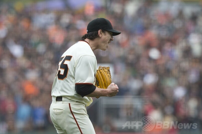 ジャイアンツで2度のワールドシリーズ制覇を経験しているリンスカムは、本拠地AT&Tパーク(AT&T Park)に詰めかけた約4万1500人の観客の前で、6奪三振を記録し、許した走者は四球で出した1人だけという見事なピッチングを見せた。(c)AFP