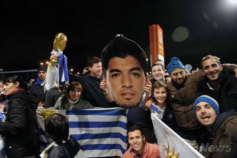 伝えられるところによると、スアレスはウルグアイの首都モンテビデオ(Montevideo)に向かっており、カラスコ国際空港(Carrasco International Airport)には多くのサポーターが詰めかけている。(c)AFP
