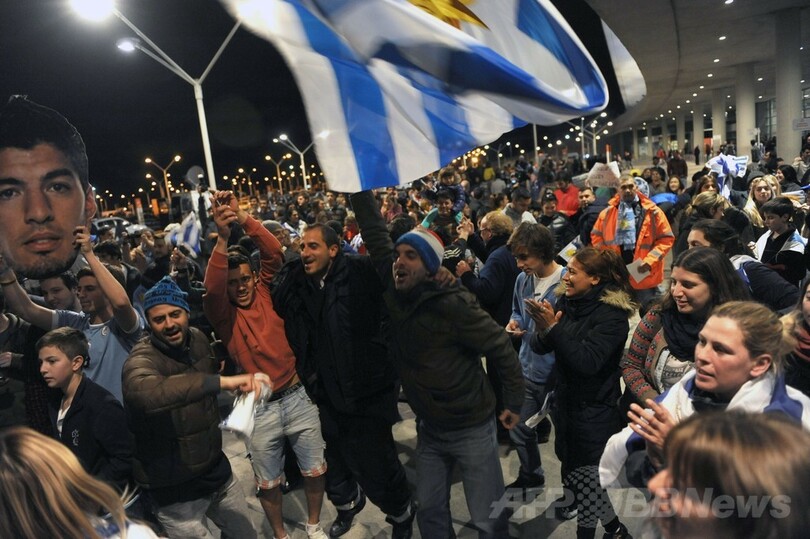 伝えられるところによると、スアレスはウルグアイの首都モンテビデオ(Montevideo)に向かっており、カラスコ国際空港(Carrasco International Airport)には多くのサポーターが詰めかけている。(c)AFP