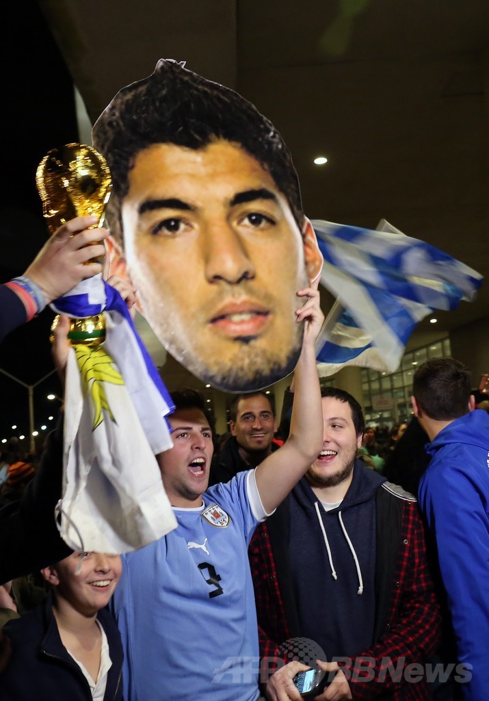 伝えられるところによると、スアレスはウルグアイの首都モンテビデオ(Montevideo)に向かっており、カラスコ国際空港(Carrasco International Airport)には多くのサポーターが詰めかけている。(c)AFP