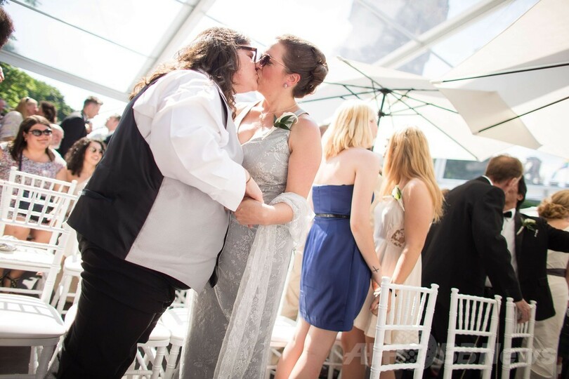異国でドラマチックな瞬間を迎え、感情の高まったガンサーさんとラスレットさんは、いつかは自分たちの結婚が母国でも認められる日が来ると信じたいとし、「母国に帰った後、たとえ私たちの結婚が認められなくても、私たちはお互いを夫と呼ぶよ」と述べた。