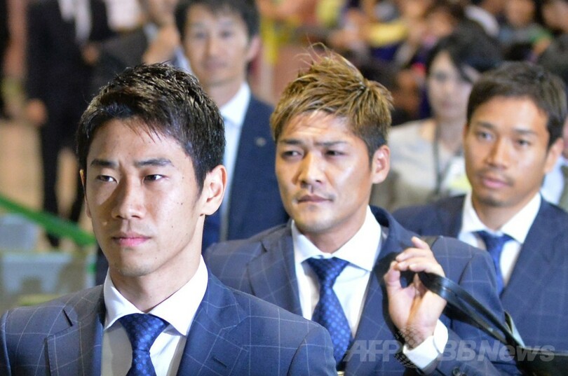 【6月27日 AFP】サッカーW杯ブラジル大会(2014 World Cup)でグループリーグ敗退に終わった日本代表が27日、帰国し成田空港(Narita Airport)に到着した。空港には大勢のファンが詰め掛け、選手たちを出迎えた。(c)AFP