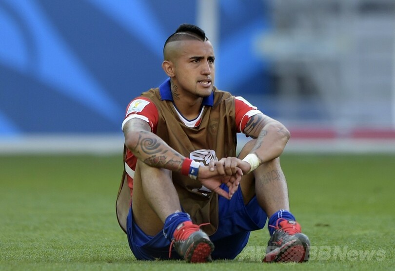 W杯でのブラジルの悪夢を拭い去ることができなかったチリは、1998年フランス大会、2010年南アフリカ大会(2010 World Cup)に続き、またもブラジルに8強入りを阻まれた。(c)AFP/Andy SCOTT