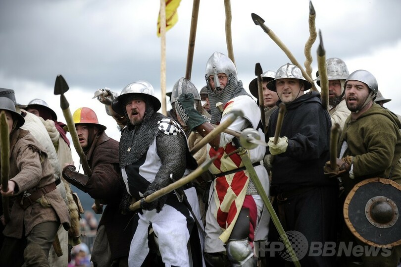 【6月29日 AFP】英スコットランド(Scotland)・スターリング(Stirling)南郊のバノックバーン(Bannockburn)で28日、1314年にスコットランド軍がイングランド軍を破った「バノックバーンの戦い(Battle Of Bannockburn)」から700年を記念し、当時の合戦の様子を再現する催しが行われた。
