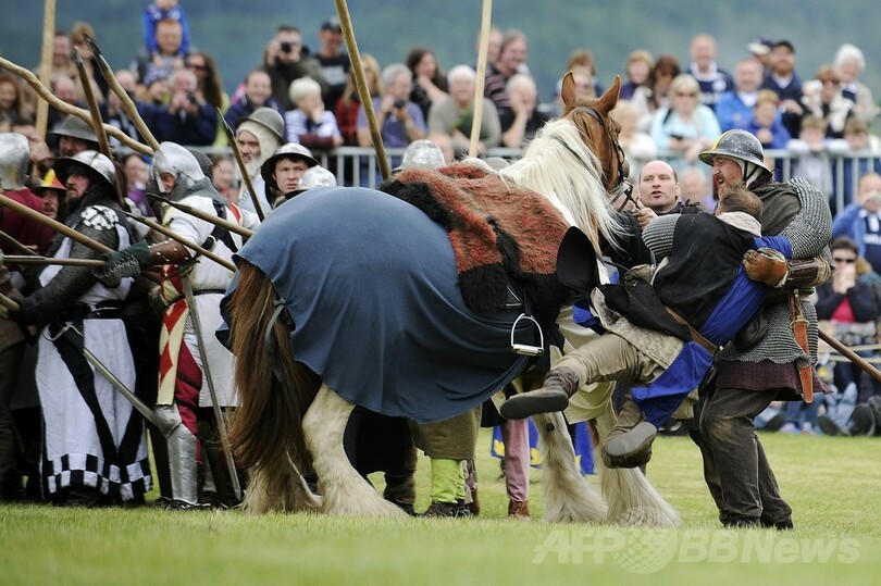 【6月29日 AFP】英スコットランド(Scotland)・スターリング(Stirling)南郊のバノックバーン(Bannockburn)で28日、1314年にスコットランド軍がイングランド軍を破った「バノックバーンの戦い(Battle Of Bannockburn)」から700年を記念し、当時の合戦の様子を再現する催しが行われた。