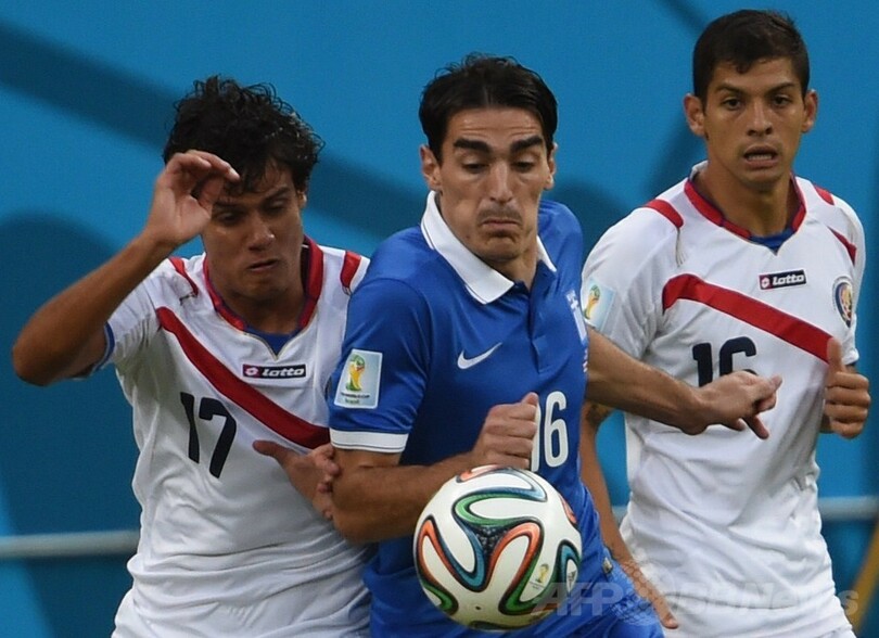 0-0で迎えた後半7分、コスタリカはクリスティアン・ボラーニョス(Christian Bolanos)のパスを受けたブライアン・ルイス(Bryan Ruiz)が、ペナルティーエリア手前から先制点を決めた。グループDのイタリア戦で決勝トーナメント進出を決める得点を挙げたルイスのシュートは力強いものではなかったが、ギリシャのGKオレスティス・カルネジス(Orestis Karnezis)は一歩も動くことができず、見送るだけだった。