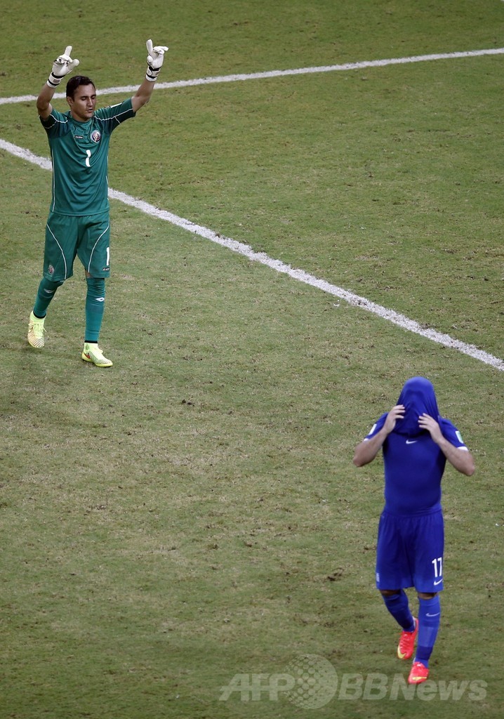 延長戦に入った試合はそのまま均衡破れず、決着はPK戦にもつれ込むと、ギリシャは4人目のゲカスのシュートをナバスが止め、コスタリカは5人目のマイケル・ウマニャ(Michael Umana)が歴史的な勝利を決めるシュートを蹴り込んだ。(c)AFP