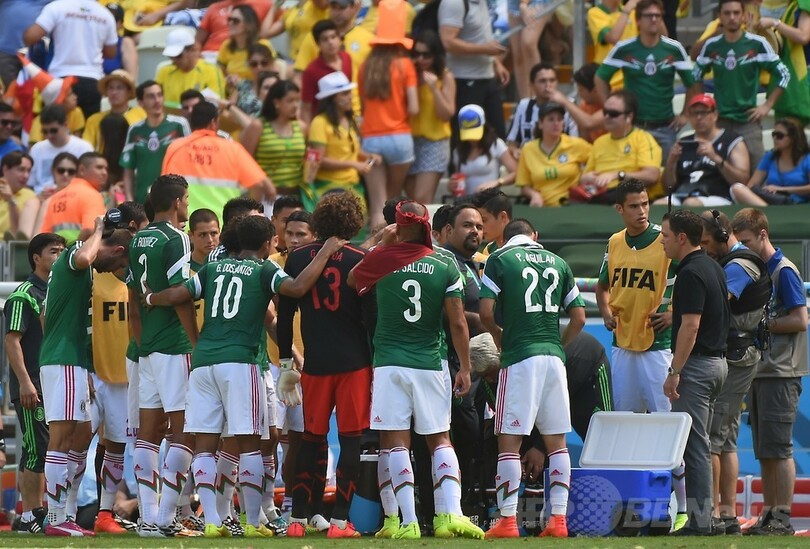 【6月30日 AFP】うだるような暑さのフォルタレーザ(Fortaleza)で行われたサッカーW杯ブラジル大会(2014 World Cup)決勝トーナメント1回戦、オランダ対メキシコの試合で、前半30分を迎えたところで今大会初めて3分間の給水タイムが設けられた。