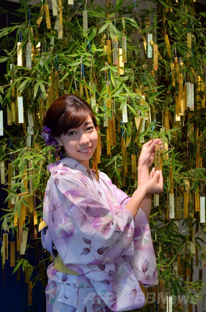 【7月3日 AFP】東京・銀座にある田中貴金属直営のジュエリーショップ「Ginza Tanaka(ギンザ・タナカ)」では、7日の七夕を前に、願い事がつづられた短冊の笹飾りが店内を彩っている。七夕が終わった後、願いがかなうよう笹飾りは近所の神社に奉納されるという。(c)AFP