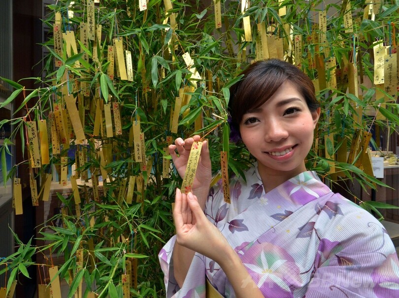 七夕飾りに金箔の短冊、銀座の宝飾店