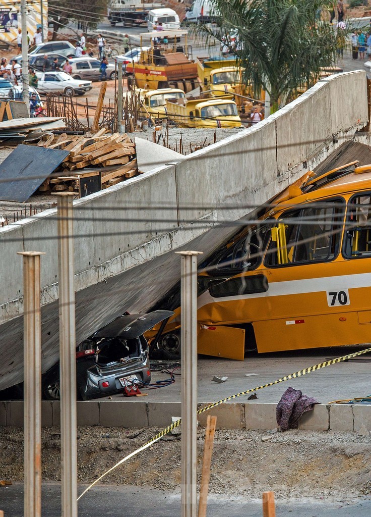 事故現場はW杯スタジアムから約5キロ離れた場所。地元テレビ局グロボ(Globo)が放送した映像には、倒壊した道路の大きな一部分が黄色いバスの上に落ち、運転席部分がつぶれている様子が写っていた。