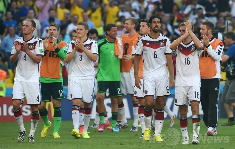 ドイツは、8日にベロオリゾンテ(Belo Horizonte)で行われる準決勝で、ブラジルとコロンビアの勝者と対戦する。(c)AFP