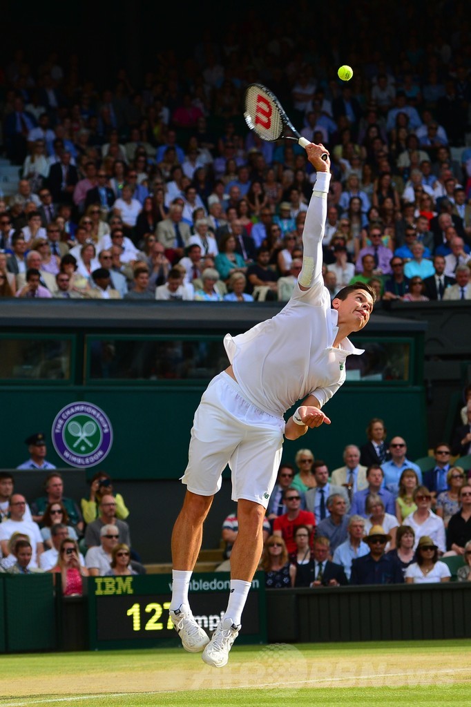 【7月5日 AFP】テニス、ウィンブルドン選手権(The Championships Wimbledon 2014)は4日、男子シングルス準決勝が行われ、大会第4シードのロジャー・フェデラー(Roger Federer、スイス)が6-4、6-4、6-4で第8シードのミロス・ラオニッチ(Milos Raonic、カナダ)を下し、決勝に進出した。