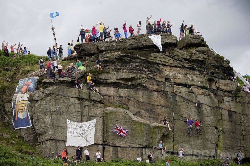 第1ステージを制したスプリンターで、総合首位の黄色のジャージーをまとってこの日を迎えたジャイアント・シマノ(Giant-Shimano)のマルセル・キッテル(Marcel Kittel、ドイツ)は、ほかのスプリンターたちに交じり、ほぼ20分遅れでフィニッシュした。(c)AFP/Barnaby CHESTERMAN