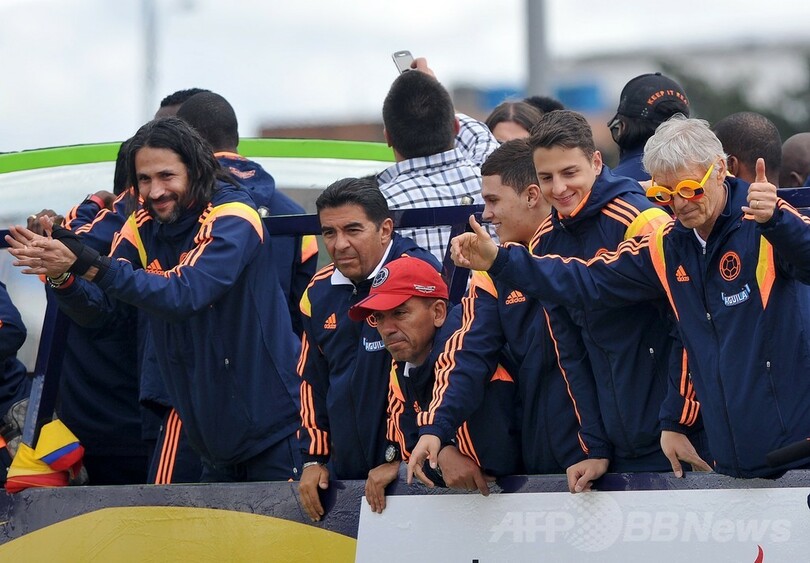 首都ボゴタはこの日、ホセ・ペケルマン(Jose Pekerman)監督と選手たちを迎える巨大なパーティー会場と化した。コロンビアは、4日にフォルタレーザ(Fortaleza)で行われた準々決勝ではブラジルに1-2で惜敗したものの、同国史上初のベスト8入りを果たしている。