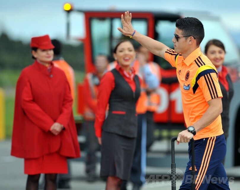 W杯で6得点を挙げて得点王争いのトップに立ち、コロンビア代表のスターとなったハメス・ロドリゲス(James Rodriguez)は、熱狂する群衆に向かって「いつも一緒にいてくれて、そして支えてくれてありがとう。愛してます」と伝えた。