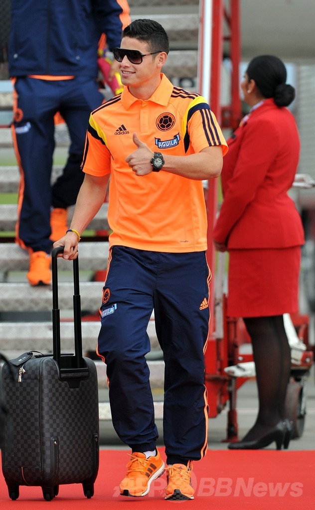 W杯で6得点を挙げて得点王争いのトップに立ち、コロンビア代表のスターとなったハメス・ロドリゲス(James Rodriguez)は、熱狂する群衆に向かって「いつも一緒にいてくれて、そして支えてくれてありがとう。愛してます」と伝えた。
