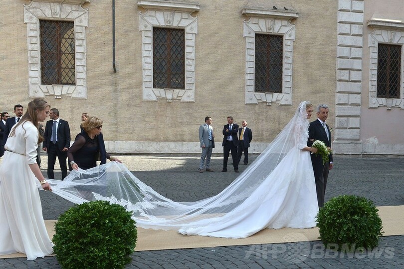 この日、花嫁のエリザベッタさんは「ヴァレンティノ クチュール(Valentino)」のウエディングドレスを着用。幸せな門出を祝った。(c)MODE PRESS