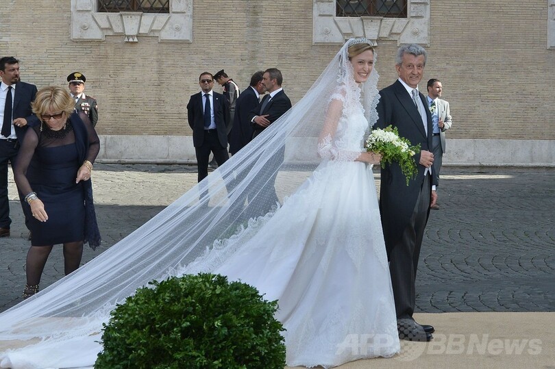 この日、花嫁のエリザベッタさんは「ヴァレンティノ クチュール(Valentino)」のウエディングドレスを着用。幸せな門出を祝った。(c)MODE PRESS