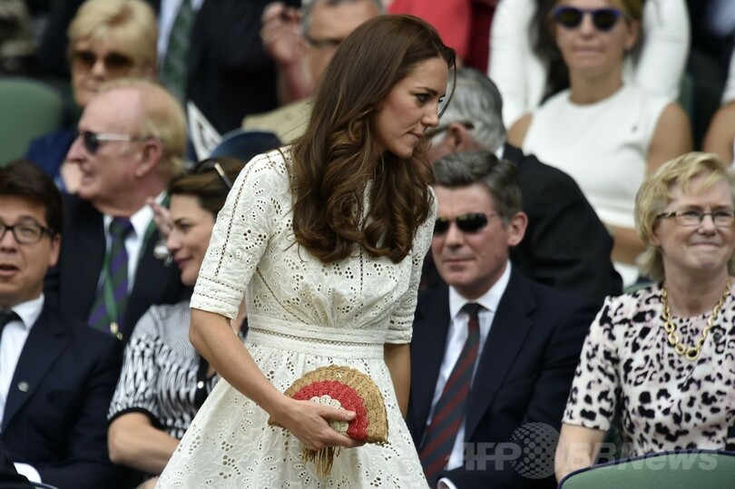 6日、ノヴァク・ジョコビッチとロジャー・フェデラーの対戦を鑑賞するためウィンブルドン選手権の会場に現れたキャサリン妃。この日は、「ジョナサン・サンダース(Jonathan Saunders)」のワンピースを着用した。