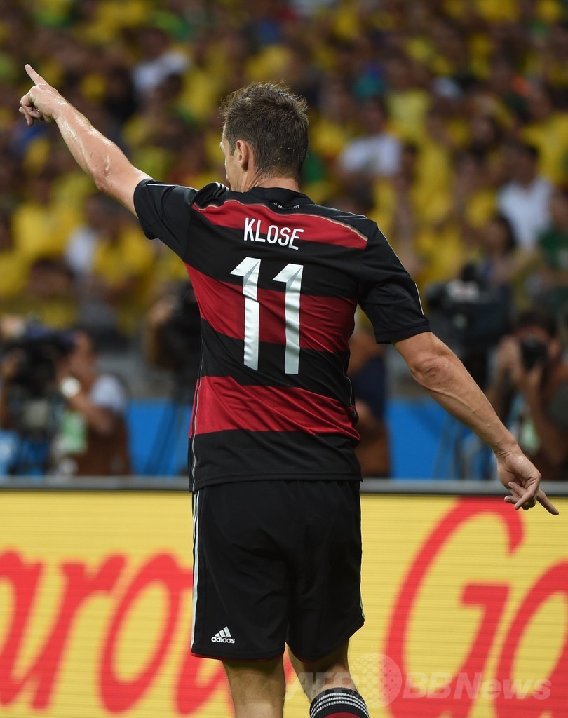 【7月9日 AFP】サッカーW杯ブラジル大会(2014 World Cup)は8日、ベロオリゾンテ(Belo Horizonte)でブラジル対ドイツの準決勝が行われ、ドイツのミロスラフ・クローゼ(Miroslav Klose)がW杯通算16得点目を決めて、大会最多得点記録を更新した。