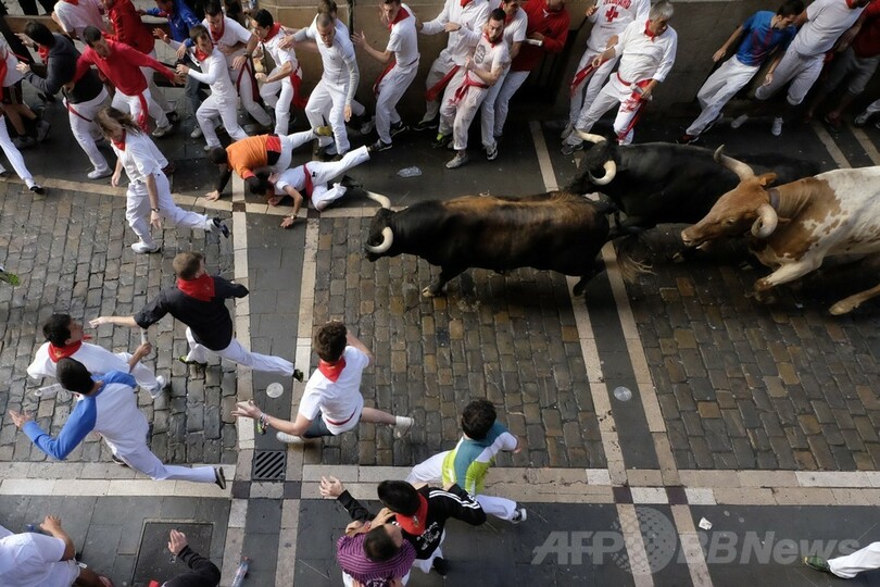 【7月9日 AFP】スペイン北部パンプロナ(Pamplona)で開催中の「牛追い祭り」こと「サン・フェルミン祭(San Fermin Festival)」で8日、日本人男性1人を含む3人が重軽傷を負い病院に搬送されたことが、地元当局の発表により分かった。