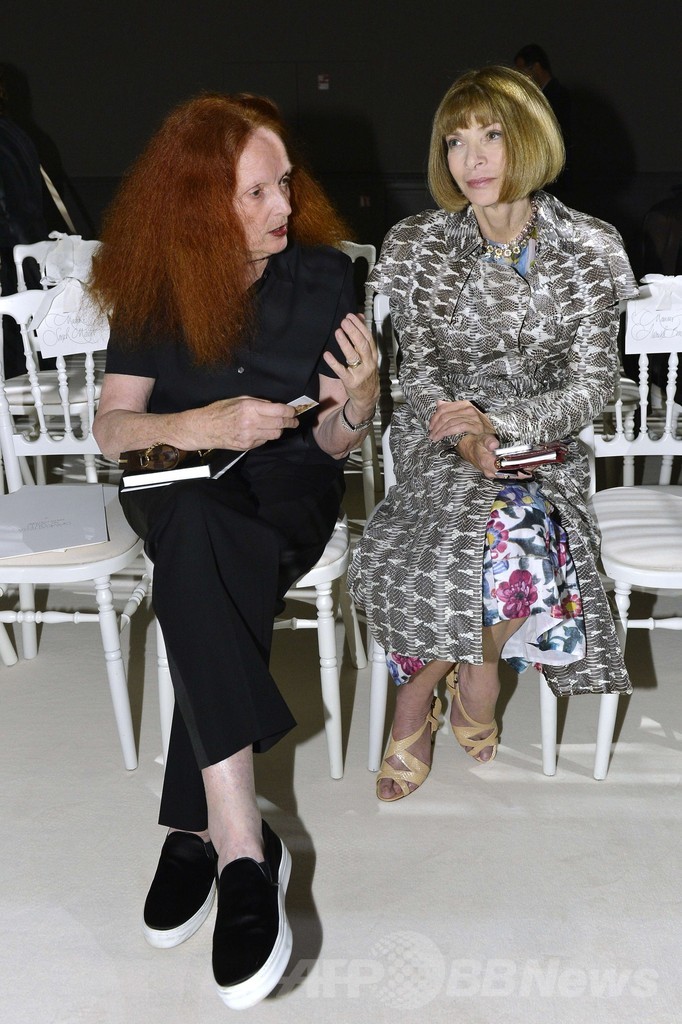 会場には、女優のエマ・ワトソン(Emma Watson)やモデルでデザイナーのイネス・ ド・ラ・フレサンジュ(Ines de la Fressange)のほか、伊『ヴォーグ(VOGUE)』のフランカ・ソッツァーニ(Franca Sozzani)編集長や米『ヴォーグ』誌のアナ・ウィンター(Anna Wintour)編集長など多彩なゲストらが姿を見せた。(c)AFP