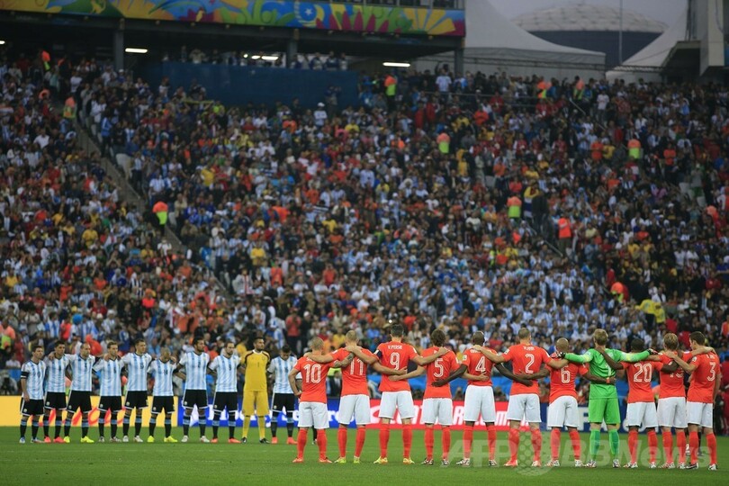 【7月10日 AFP】サッカーW杯ブラジル大会(2014 World Cup)は9日、サンパウロ(Sao Paulo)でオランダ対アルゼンチンの準決勝が行われ、試合前には7日に亡くなったレアル・マドリード(Real Madrid)の伝説、アルフレッド・ディ・ステファノ(Alfredo Di Stefano)氏に黙とうがささげられた。